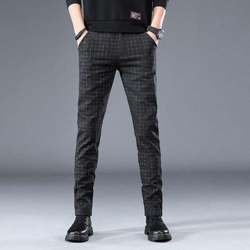 기모 일자 스판 남자 체크 무늬 정장 바지 남성 겨울 양복 신사 회사 바지 중년 40대 50대