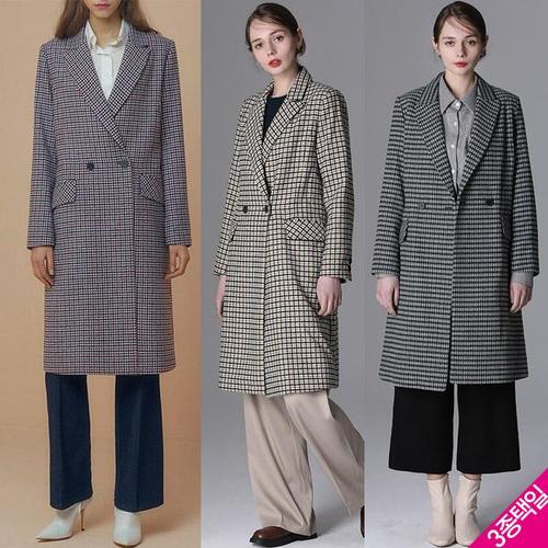 [BZJKE5GW_4B]체크 W47150 퍼안감 모직코트 체크코트