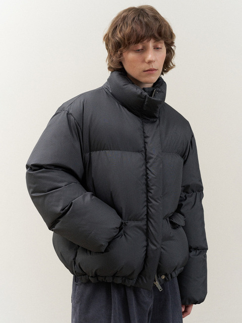 [엠클로]남자 오버핏 잔체크 볼륨 숏패딩 점퍼 1컬러