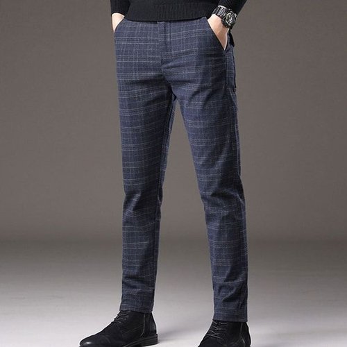 [모로엠]체크 패턴 남성 슬림 밴딩 슬랙스 팬츠 DMS-PTA-Q4261505