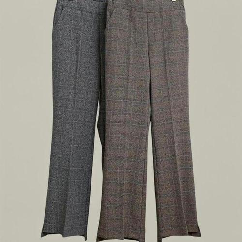 [신상오픈런]여성 캐주얼 체크 뒷밴딩 언발란스 부츠컷 슬랙스
