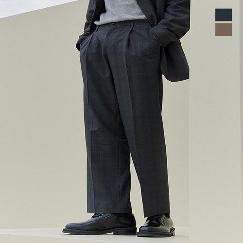 [원더플레이스][더블유스탠다드(W STANDARD)] 히든밴딩 체크 리얼 와이드 슬랙스