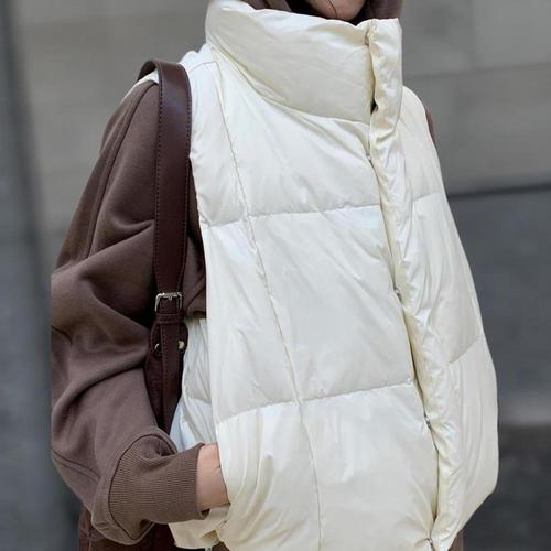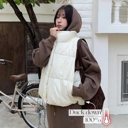 [옷자락] 여성 심플 루즈핏 초경량 오리털 덕다운 패딩 조끼