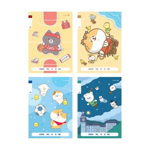 모닝글로리 초등 1-2 무제 노트 17줄 A 4종 + 2p 세트, 농구냥, 댕댕 걸리버, 댕댕축구, 솜솜피터팬, 랜덤발송(2p), 1세트