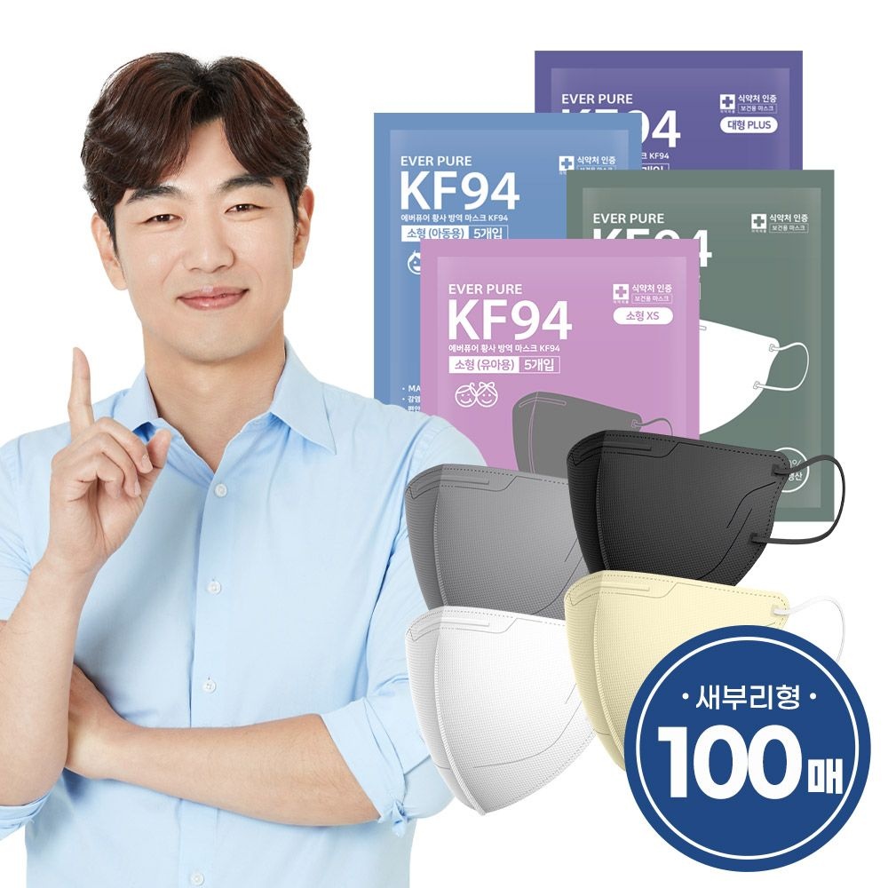 [독감 유행]에버뉴크린 KF94 새부리형 황사방역마스크 100매(초소형/소형/대형/특대형)