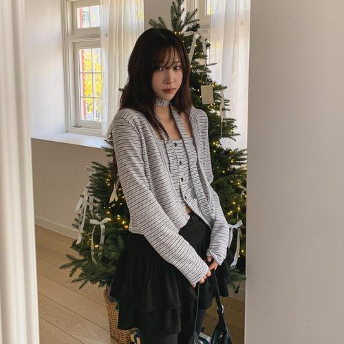 [다잇템]여자 슬리브리스 단가라 초커 카디건 세트
