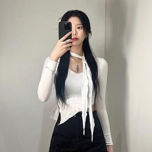 [엄지척]여성 초커 머플러 크롭티 세트 3color 언발란스 긴팔_19628870_667501