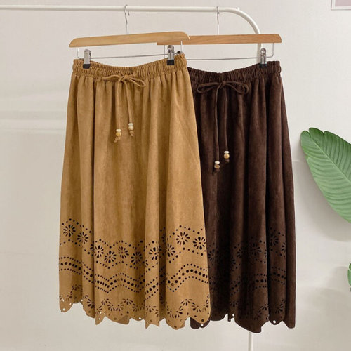 허니제이 / 티얌 펀칭 스웨이드 스트링 롱 스커트(2color)