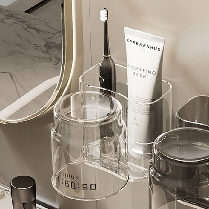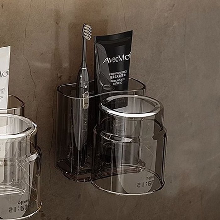 엄지척 치약 칫솔 꽂이 면도기 거치대 양치컵 세트 투명gray