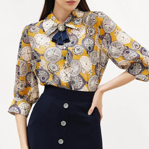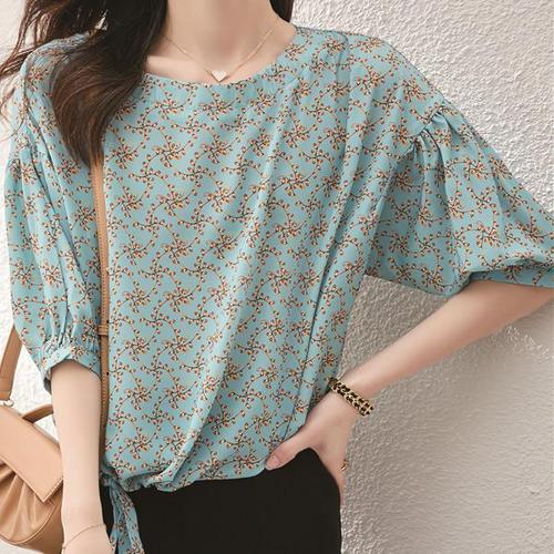 [아르테]7부 소매 나염 쉬폰 블라우스