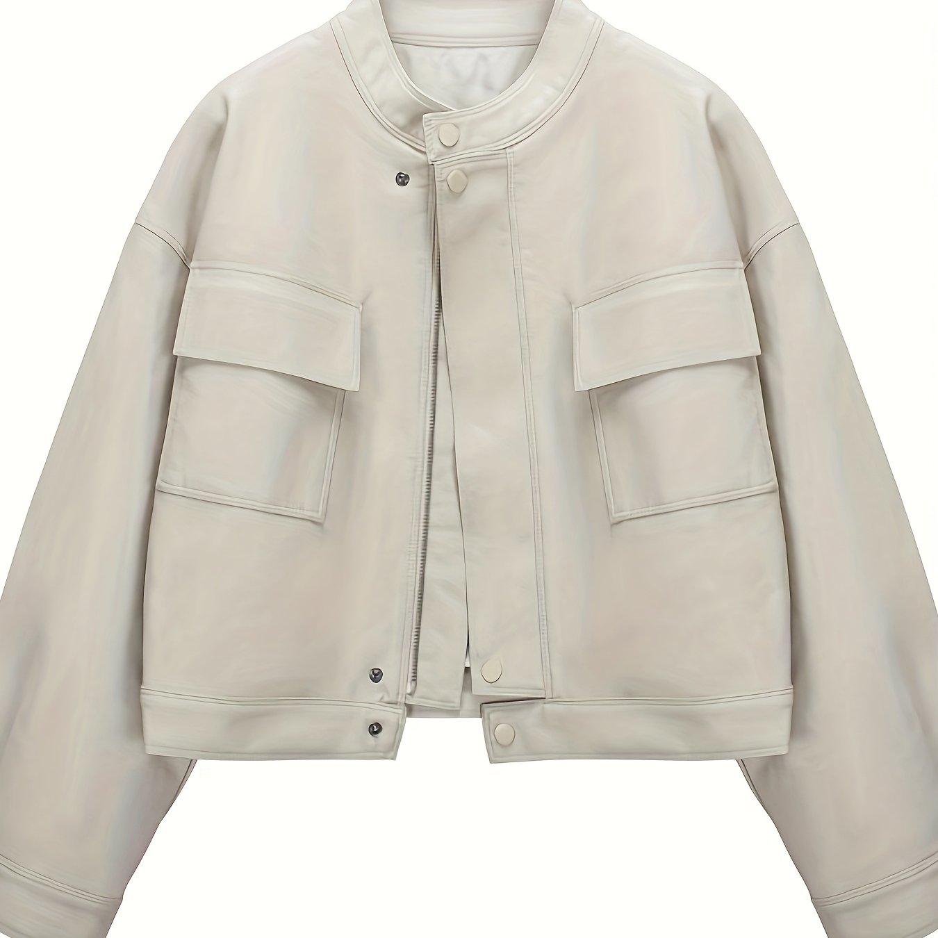 패션 스탠드 칼라 가죽 재킷 여성용 솔리드 긴 소매 라펠 지퍼 숏 루즈 재킷 2026 레이디 봄 가을 아우터웨어