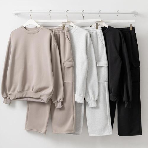 [신상오픈런]여성 가을 기모 맨투맨과 카고 팬츠 세트