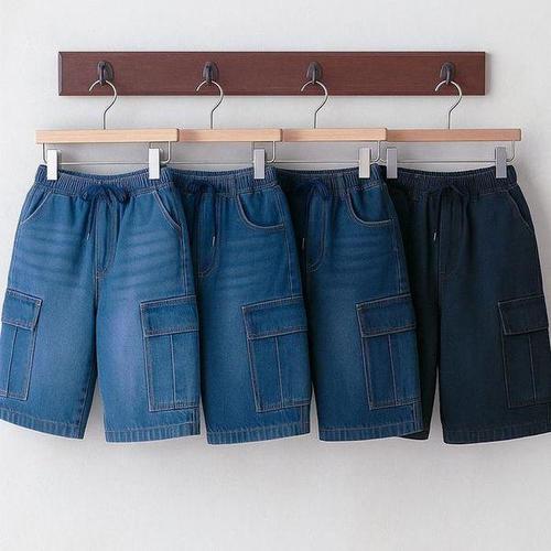 [다잇템_패션]남성 와이드핏 하프팬츠 진 카고밴딩 캣워싱