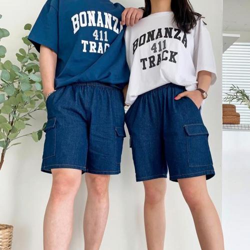 [다잇템]여자 남자 데님 여름 캐주얼 카고 청반바지