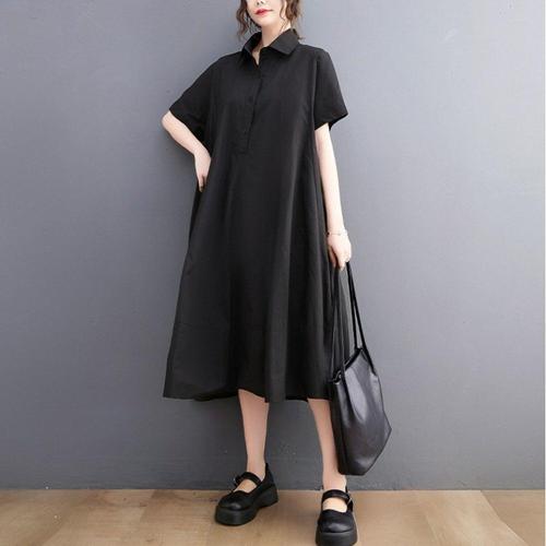 [삐까삐까]여름 청원피스 오버핏 블루 청 데님 오픈 카라 반팔 셔츠 롱 원피스
