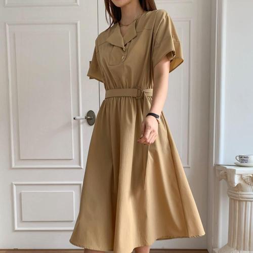 지니우우 반팔 지퍼카라 허리끈 원피스 J0141A