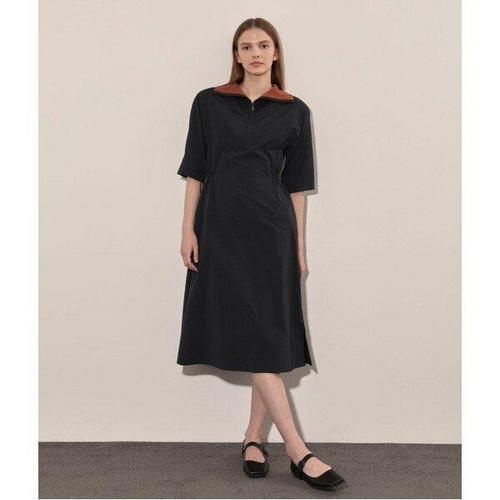 카라 배색 옆셔링 반팔 원피스 여름 캐주얼 레귤러핏 WA6E975