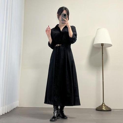 [다잇템]여자 가을하객룩 랩 카라넥 반벨트 롱원피스