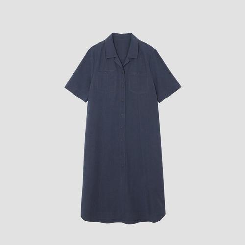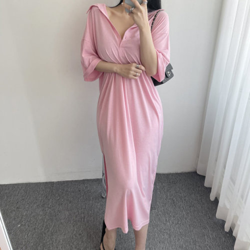 여자티셔츠 3컬러 카라 면 린넨 포켓 반팔 롱 원피스 MA8184