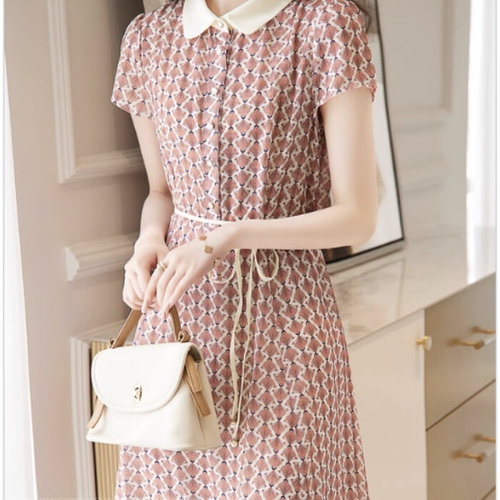 플로렌 / 챠밍 패턴 카라 반팔 원피스 BA40436