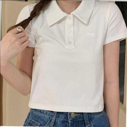 [에이치플러스몰]러블리 귀여운 데일리 크롭 여성 클래식 카라티 반팔