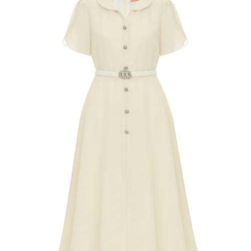 [옷자락] [시즌오프]면 허리 벨트 폴리 카라 단추 플레어 롱원피스_5