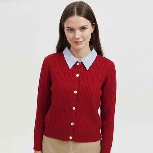 여성 셔츠 카라넥 꽈배기 데일리 니트 가디건 NARU-WCD-21040-레드