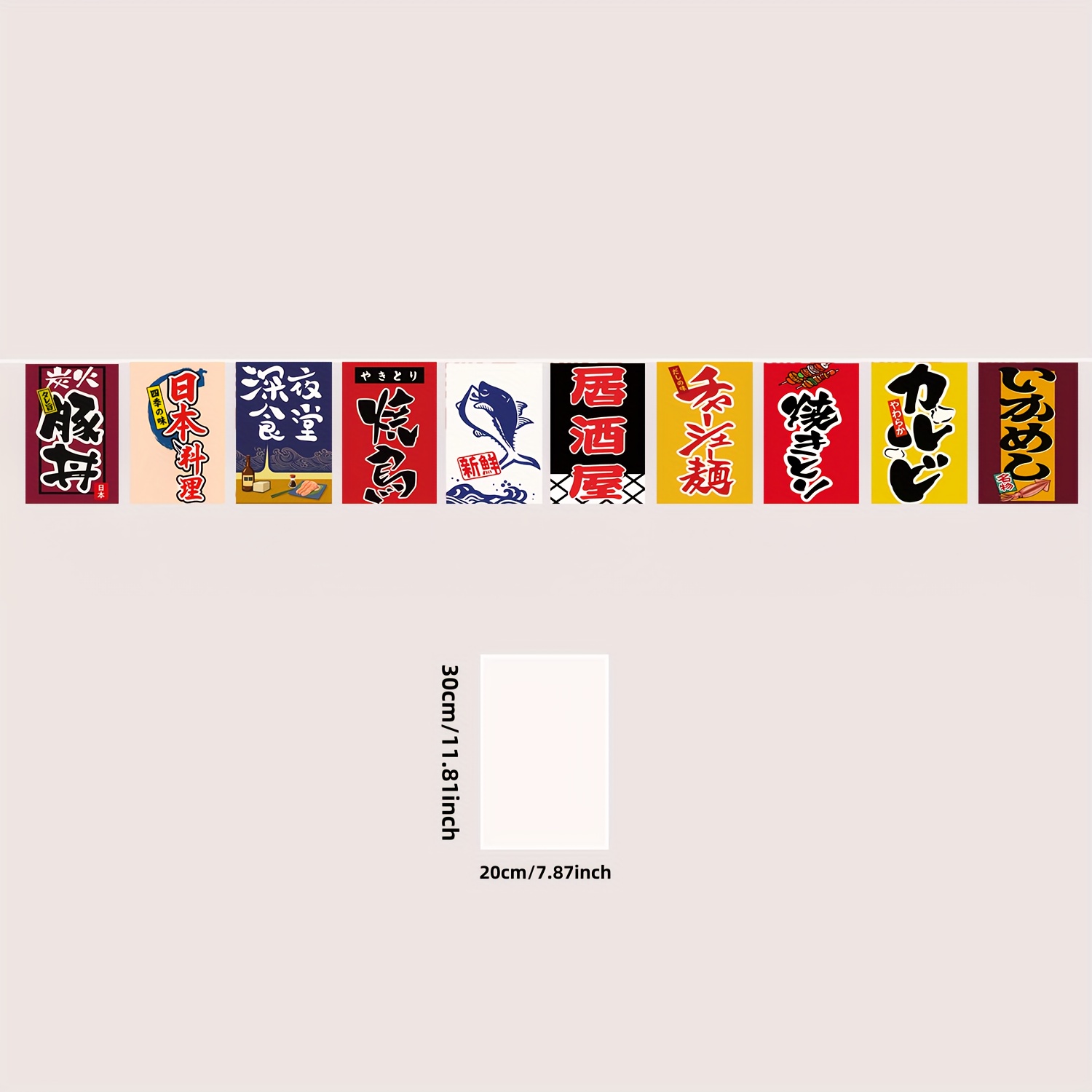 TEMU 일본 스트링 플래그 장식 10개 세트, 각 플래그 20X30Cm, 숯불 고기, 일본 요리, 나이트 나이트, 꼬치 닭고기, 생선, 이자카야, 카레, 라멘, 숯불 턱살 등 요소 커버