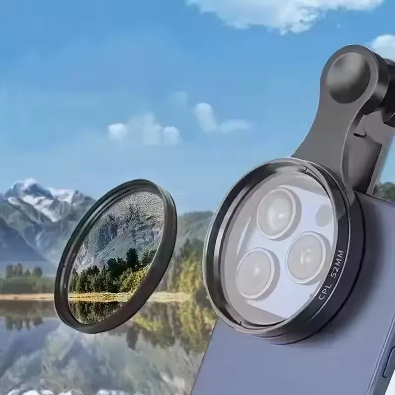 새로운 52mm CPL 모바일 폰 렌즈 필터 렌즈 클립 카메라 액세서리 원형 편광 필터 캐논 니콘 모든 스마트폰용