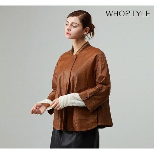 [후스타일]후스타일 여성 니트카라 레더 자켓 카멜