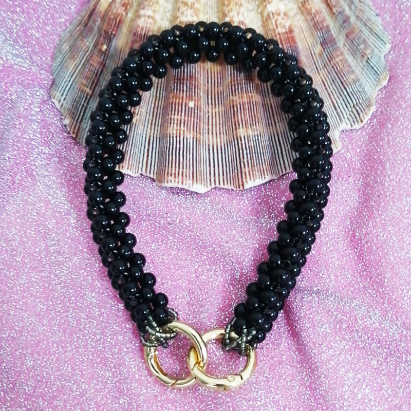 TEMU 여성 핸드백용 블랙 진주 가방 스트랩 액세서리 1개, 숄더백용 짧은 비즈 직조 손잡이, DIY 지갑 제작