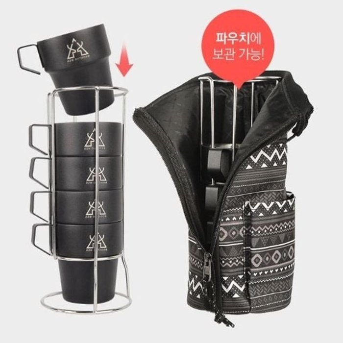 조르지오 카즈미 머그컵 캠핑 물컵 머그컵 파우치 세트 5p