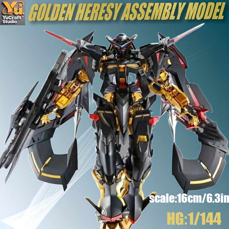 TEMU 골든 헤레시 어셈블리 모델 - 1/144 스케일 메탈 아머 피규어, 빨간 액센트 및 총, RPG 게임, 파티 선물, 집/사무실 장식, 게임 룸 액세서리, 세부적인 공예