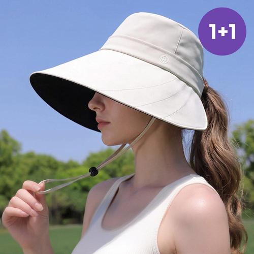 [루즈루나] 1+1 일로나 여성 자외선차단 와이드챙 챙넓은 여름 버킷햇 턱 끈 모자 K265