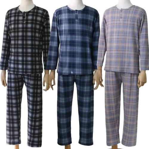 진짜 기모 남성 체크 파자마 상하세트 포근한 겨울 수면 잠옷