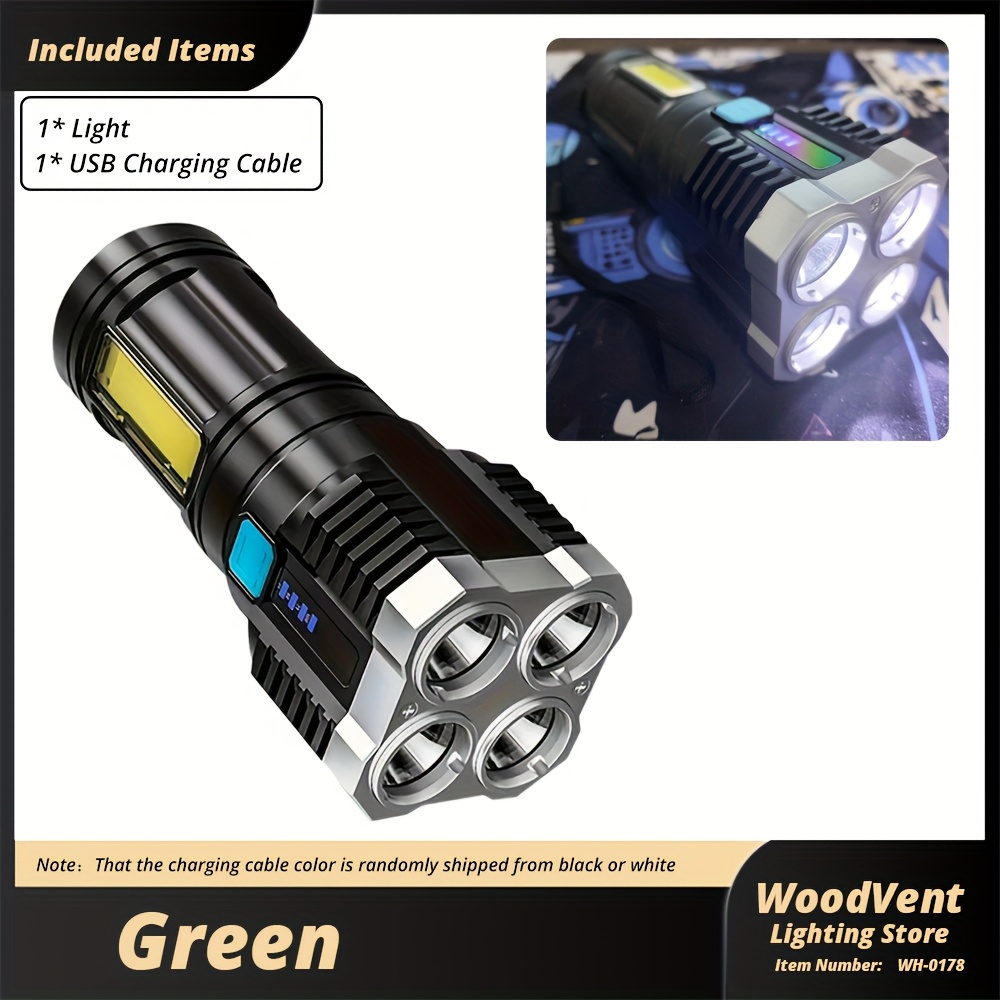 TEMU 1개 초고휘도 XHP70 파워 LED 플래시라이트 파워뱅크 플래시라이트 USB 충전식 전술 플래시라이트 COB 라이트 포함, 캠핑용 손전등,핸드헬드 토치,컴팩트 디자인,고루먼 출력,강력한 손전등,캠퍼 및 하이커,모험가