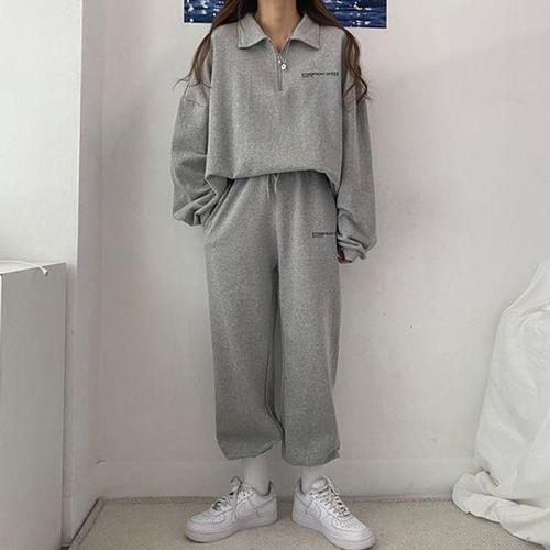 [다잇템_패션]여자 SS 맨투맨 트레이닝룩 하프집업 세트