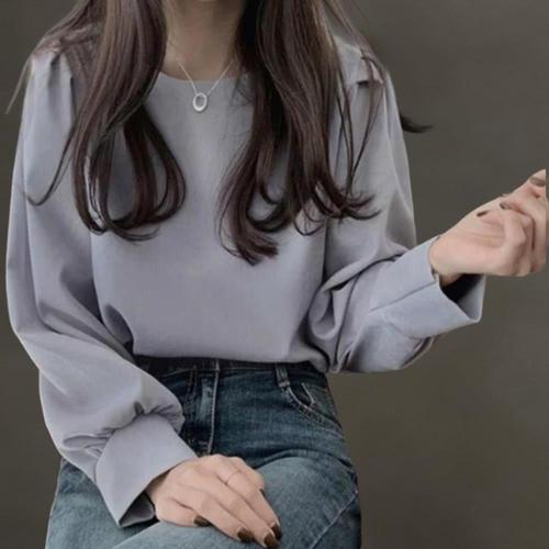 [미라클세븐]여성용 심플 컬러 긴팔 라운드넥 티셔츠