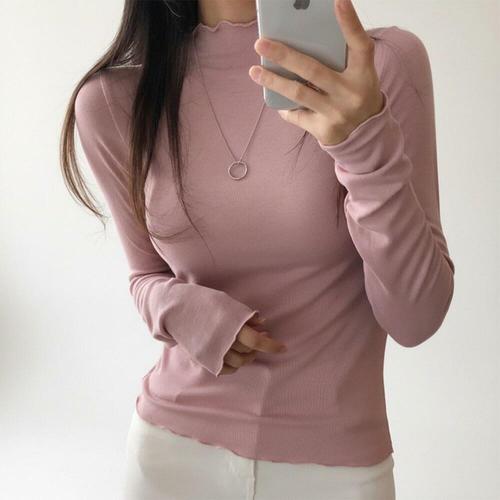 [미라클세븐]여성 슬림핏 물결 디자인 목폴라 이너 티셔츠 파스텔 컬러