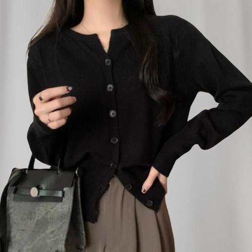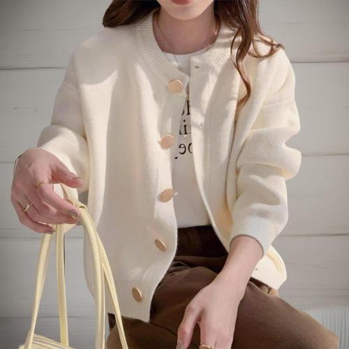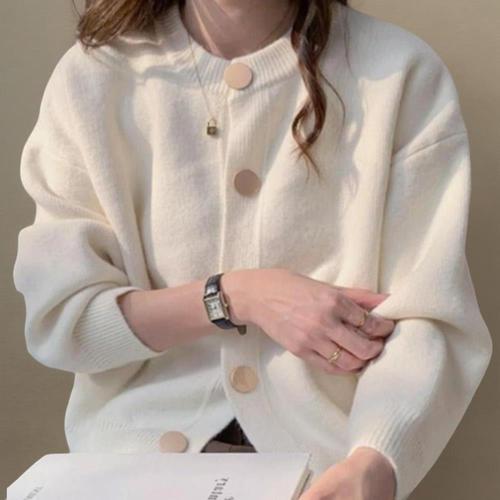 [미라클세븐]여성용 루즈핏 무지컬러 클래식 니트 가디건 빅버튼