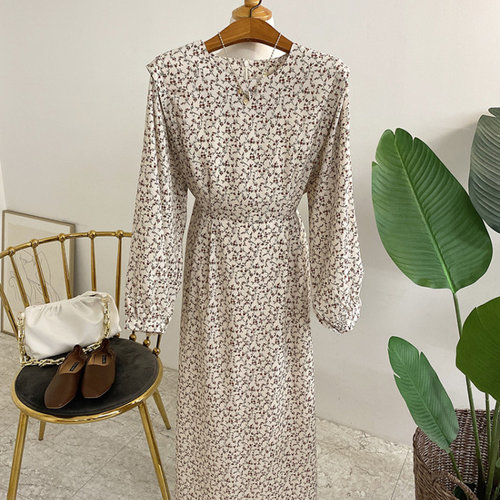 [옷자락]여자 코튼 핀턱 무지컬러 플레어 퍼프 롱 원피스
