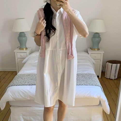 [다잇템]여자 중간 핀턱 무지컬러 반소매 남방 원피스