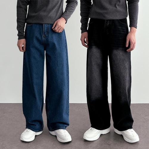 [쿼터]남자샌드워싱청바지 남자와이드데님팬츠 롱청바지 2color