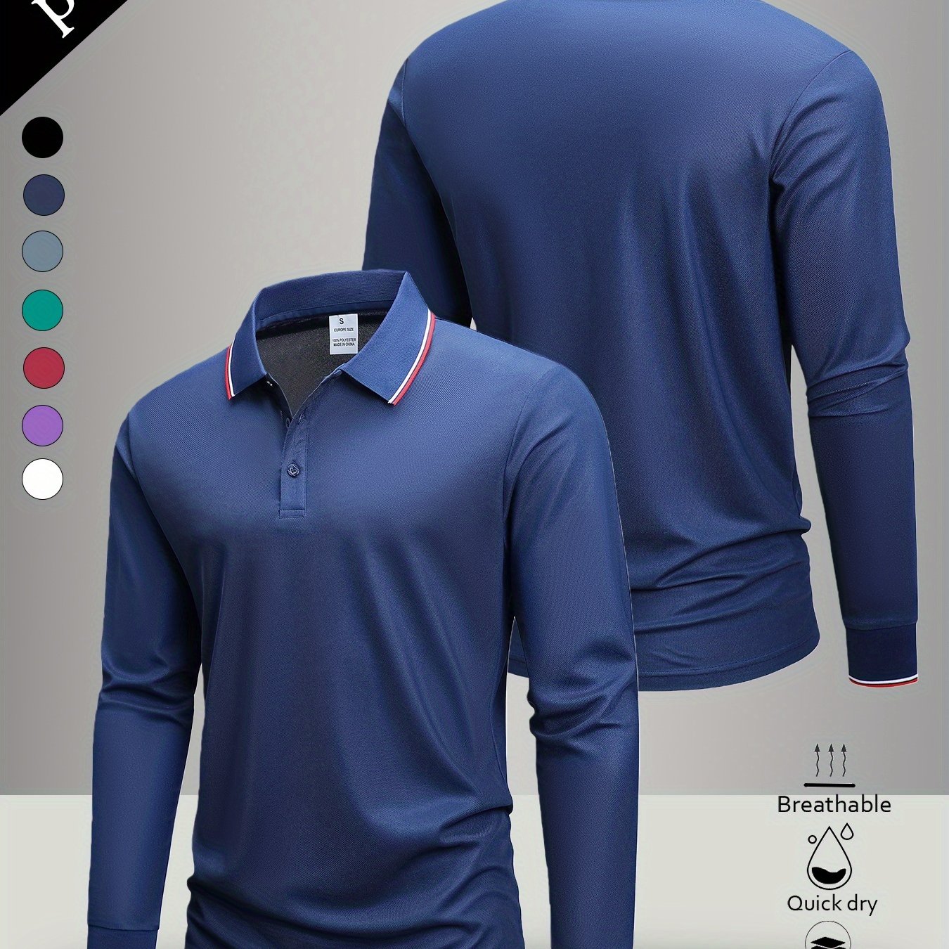 TEMU [Shule Water OBM] 남성용 긴팔 셔츠 한 벌 (봄, 가을용). 칼라 디자인의 및 단색 폴로 셔츠. 남성용 캐주얼 스포츠웨어. 여행 및 직장에 적합. 선물용.
