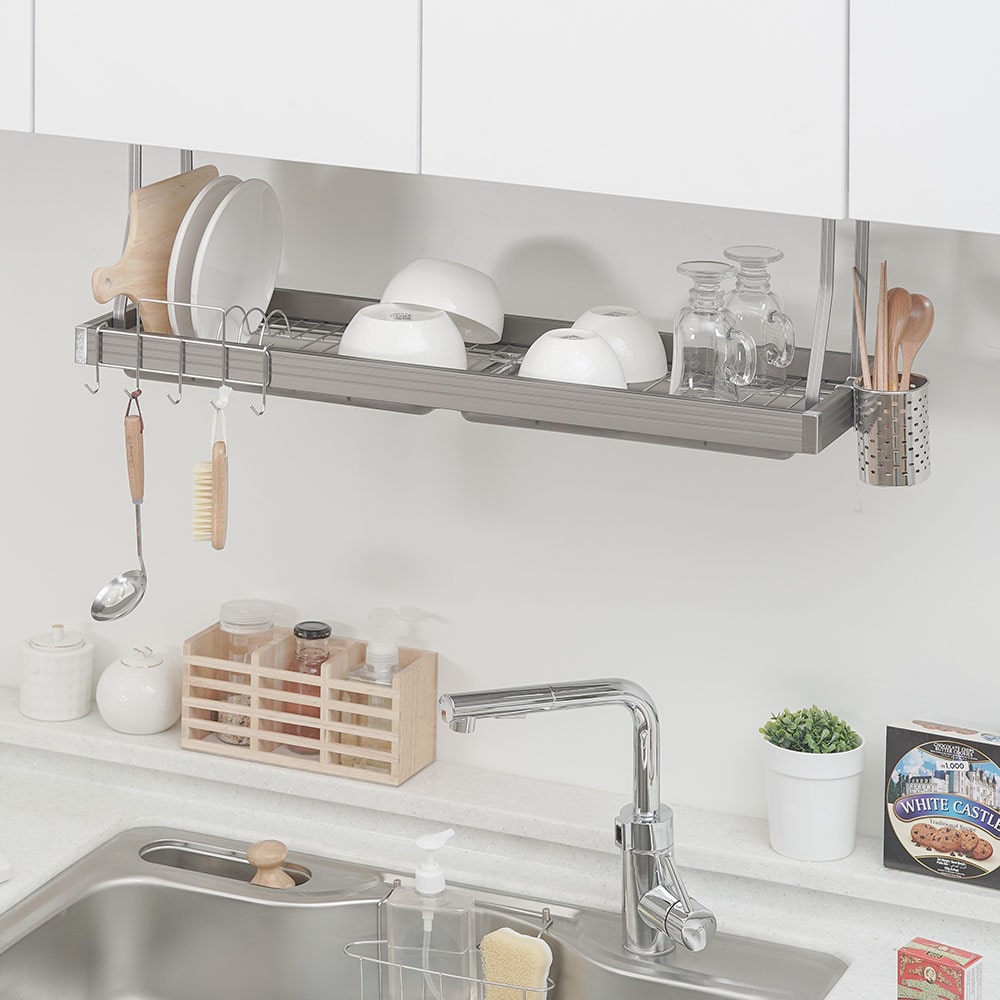뉴해피 천장형 식기건조대 1200 모던 / 상부장 피스 고정 부착형 싱크선반