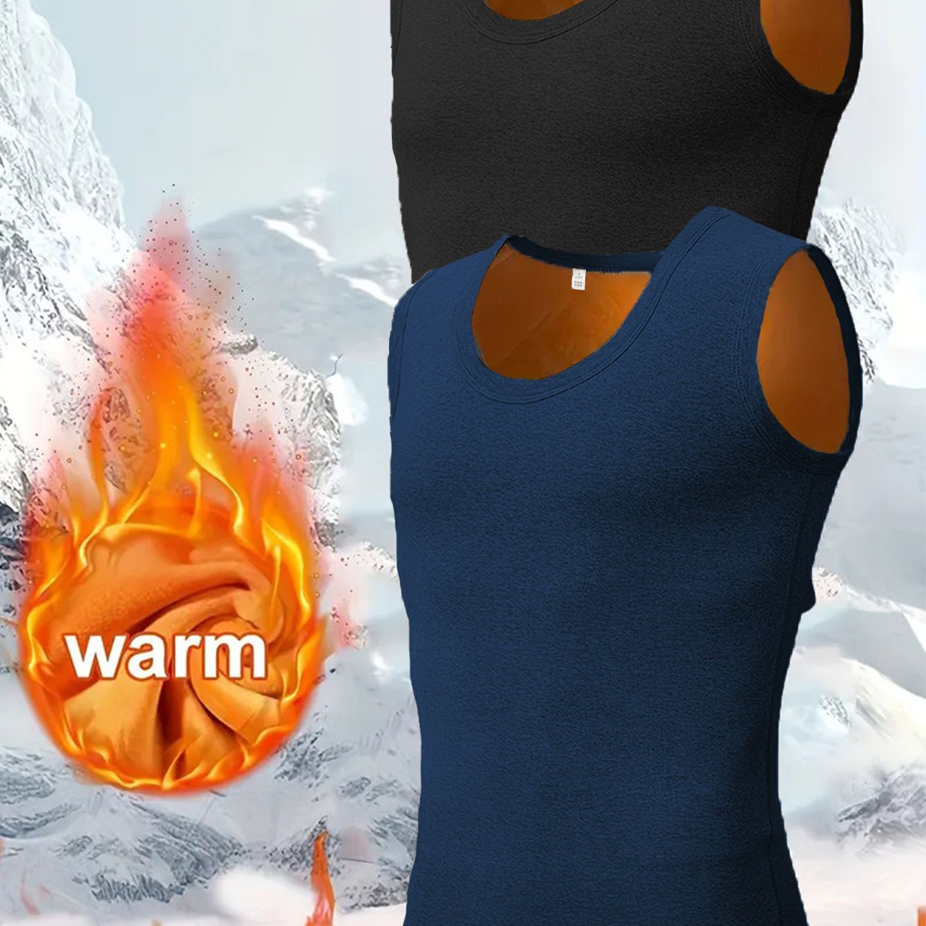 TEMU 2개 남성용 민소매 베스트, 플리스 안감이 있는 따뜻한 겨울 이너셔츠 - 라운드넥과 골든벨벳 내부로 편안함 & 탄력성 UP (블랙/네이비)