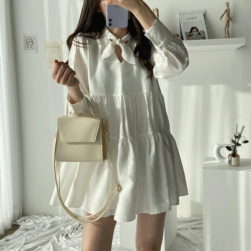 더클립 / 사이닝 리본 타이 캉캉 미니 원피스 - 3color