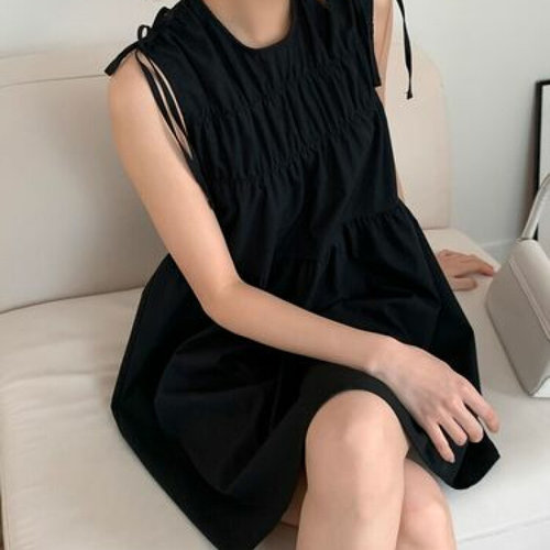 [신상오픈런]여성 슬림핏 셔링 캉캉 나시 미니 드레스