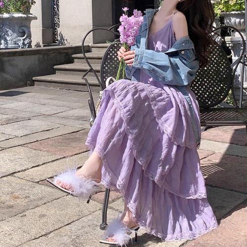 AOKADA 여성 여름 루즈핏 쉬폰 끈나시 원피스 캉캉 원피스 바캉스룩 휴양지룩