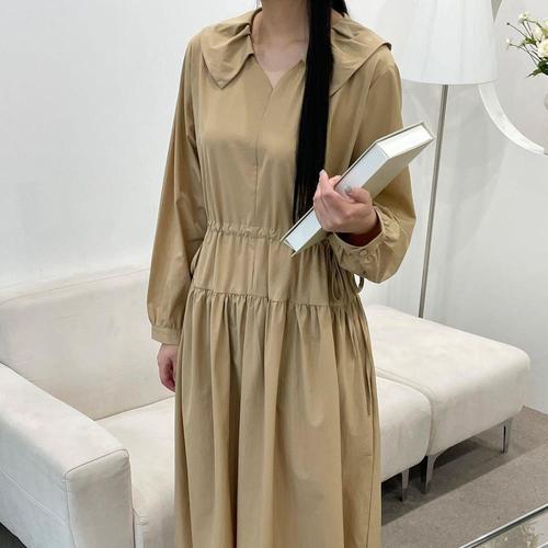 [옷자락] [시즌오프]허리조절 플레어 가을등원룩 무지 캉캉 롱원피스_5